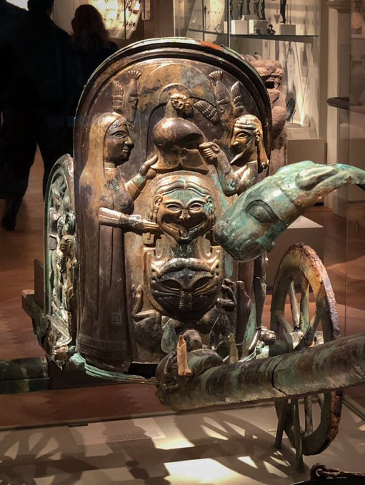 Εδώ, ένας 6ος αιώνα Χάλκινο και χρυσελεφάντινο άρμα που απεικονίζει τον Αχιλλέα να παίρνει ένα νέο κράνος και ασπίδα από τη μητέρα του Θέτιδα, η οποία τα είχε σφυρηλατήσει ο Ήφαιστος.Σημειώστε την αποθέωση του Αχιλλέα στην αριστερή πλευρά, ανηφορίζοντας με το ίδιο στυλ άρματος, που το σέρνουν φτερωτά άλογα.